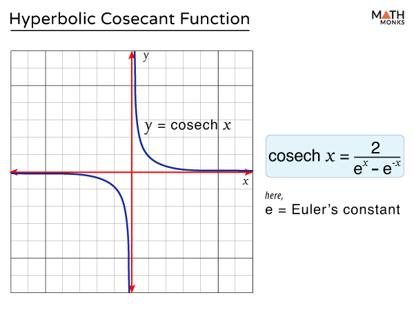 The hyperbolic cosecant function (denoted by cosech or csch) is the reciprocal of the hyperbolic sine function, which is given by the expression: